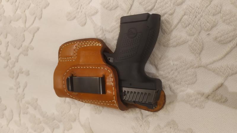 Vendo funda de cuero marrón de alta calidad para portar arma por el interior del pantalon con sujeción mediante pinza de metal de alta resistencia. Fabricada en EEUU. Muy agradable al tacto.