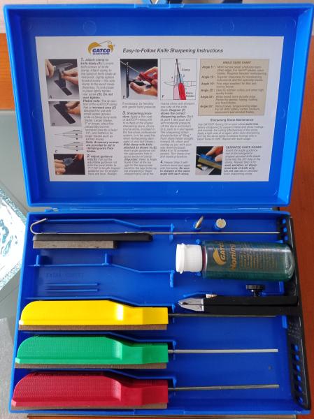 En venta ,sistema de afilar Gatco.Viene con tres piedras distintas ,mas una adicional hecha por mi de grano mas fino con una piedra tipo Arkansas.