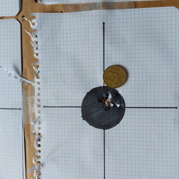 A continuación unas dianas caseras. La primera, 10 disparos a 10 metros: