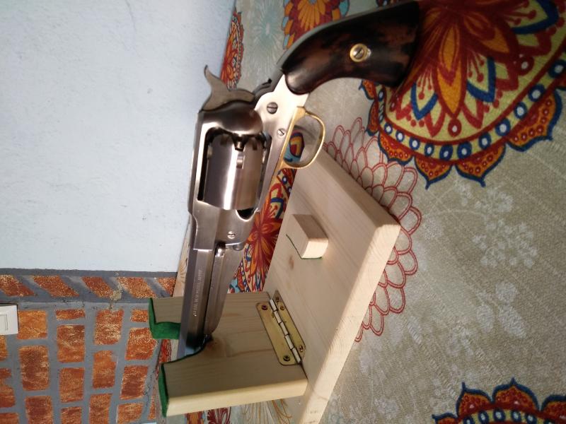 Soporte de carga para revólveres de avancarga, abatible de fabricación casera hecho en madera,
