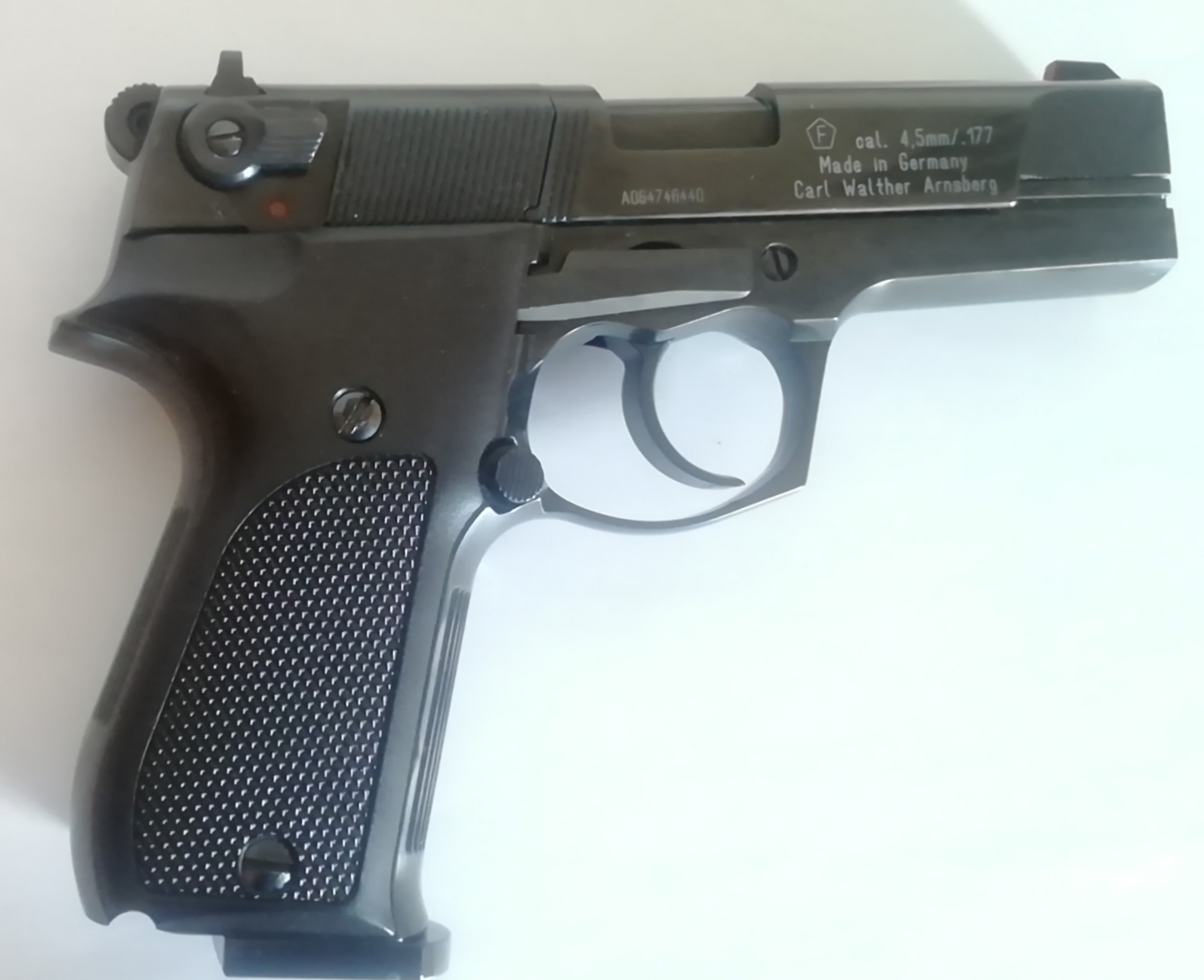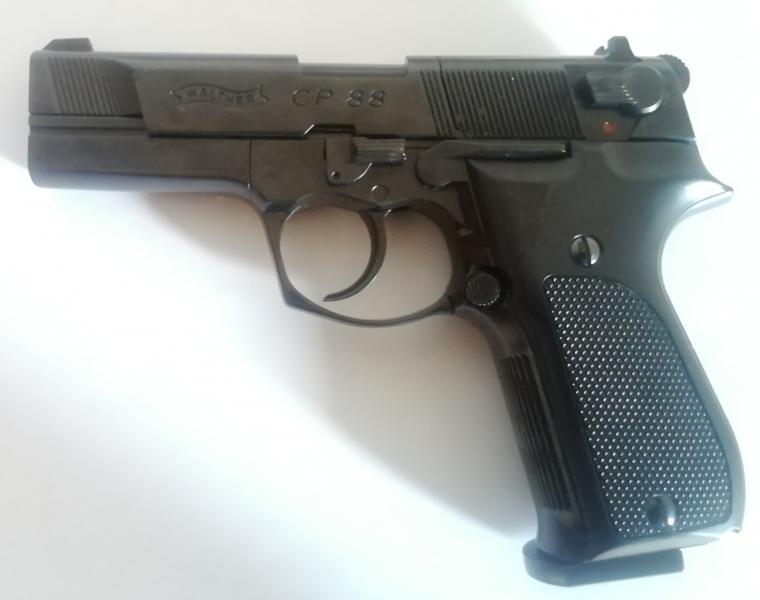 PISTOLA AIRE CO2. CALIBRE 4,5. UMAREX WALTER CP88. Semiautomática. FULL METAL (Cuerpo y Corredera Metálico ). PESO: 1040 GR.