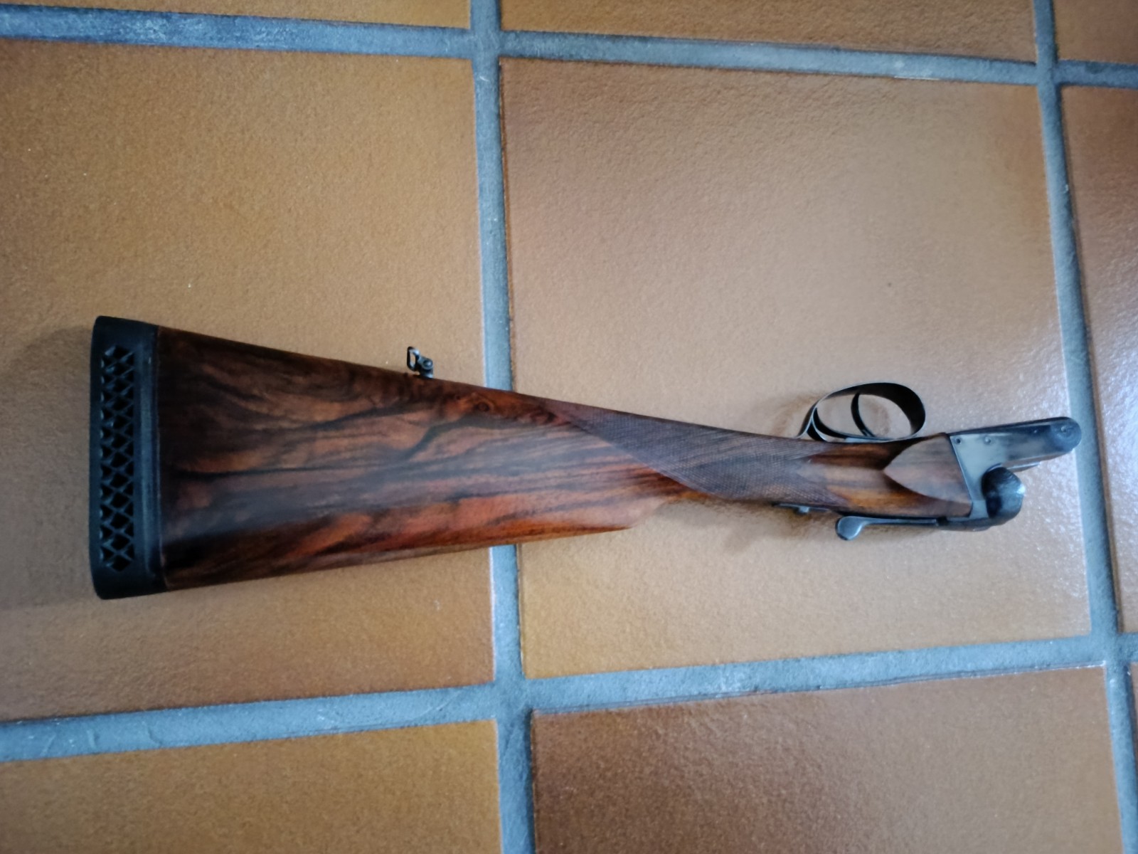 VENDIDA escopeta Brancqueart cal. 16/70 belga de lujo, aprox. años 1940. Estado impoluto, se ha conservado como de colección, sin uso. Solo 2 propietarios, yo soy el segundo. La madera es preciosa parece de raíz de nogal turco, la mejor y más bonita. No tiene ninguna rozadura o marca, tanto en la madera como en el metal.