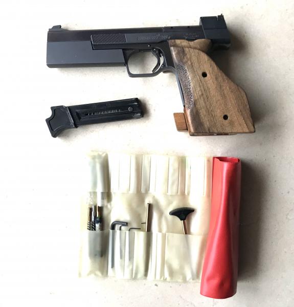 Se ofrece una magnifica pistola Hammerli modelo 208S, estado excelente sin signos de uso, tigestop, gatillo de 2 tiempos 1.050 grms, calibre 22Lr, seis pulgadas, cachas anatómicas de origen sin tocar. Con dos contrapesos, de 90 grms y 270 grms, dos cargadores. Este modelo fue campeón del mundo pistola standar en 584 puntos sobre 600.