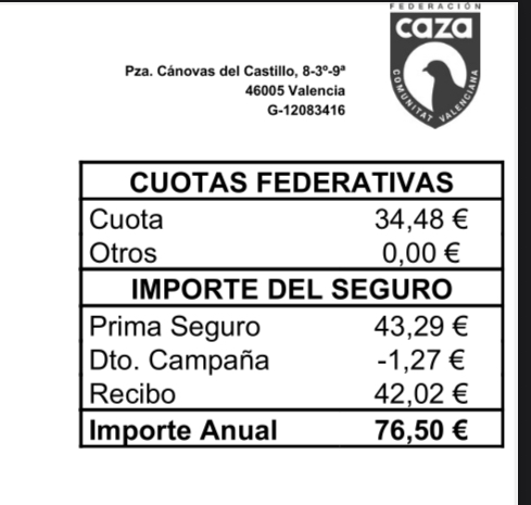 Buenas a tod@s en el coto que voy lo emos pedido bastantes por evitar posibles problemas en vista de algun accidente que an ocurrido en otros cotos sale por 99 euros intentaré poner una foto pero no sé si me saldrá no estoy muy mañoso en esto saludos a tod@s