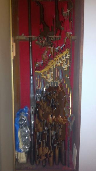 El estado es el esperado en un arma tan usada y vieja. El pavon esta desgastado y la culata tiene una fisura en la empuñadura sujetada con tornillos pasantes.