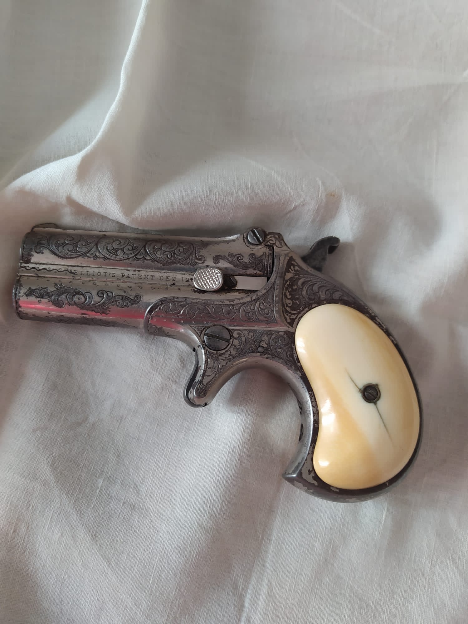 Pistola Remington de doble cañon y cachas de hueso