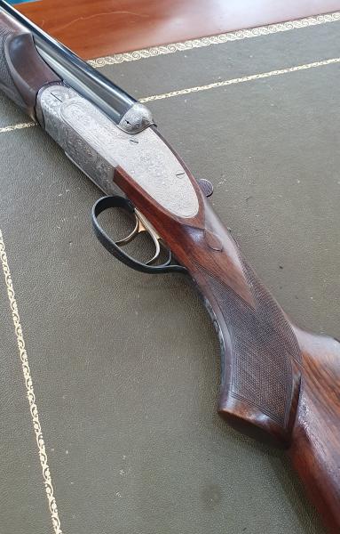 A la venta Escopeta UNION ARMERA Mod. Grulla 210 Special. Calibre 12, Cañon de 71 con 3* y 1* Pletinas corridas Grabadas. Madera de nogal tratada al aceite, Culata con Pistole y Guardamano Cola de Castor, Doble disparador (con el gatillo delantero dispara los dos tiros y con el trasero solo el izquierdo). Un Arma muy especial, pedida a capricho. Fabricada Especialmente para; caza, ojeos, recorrido y pichon. Como nueva, en perfecto estado. Precio 1.595€. Contacto 636111985