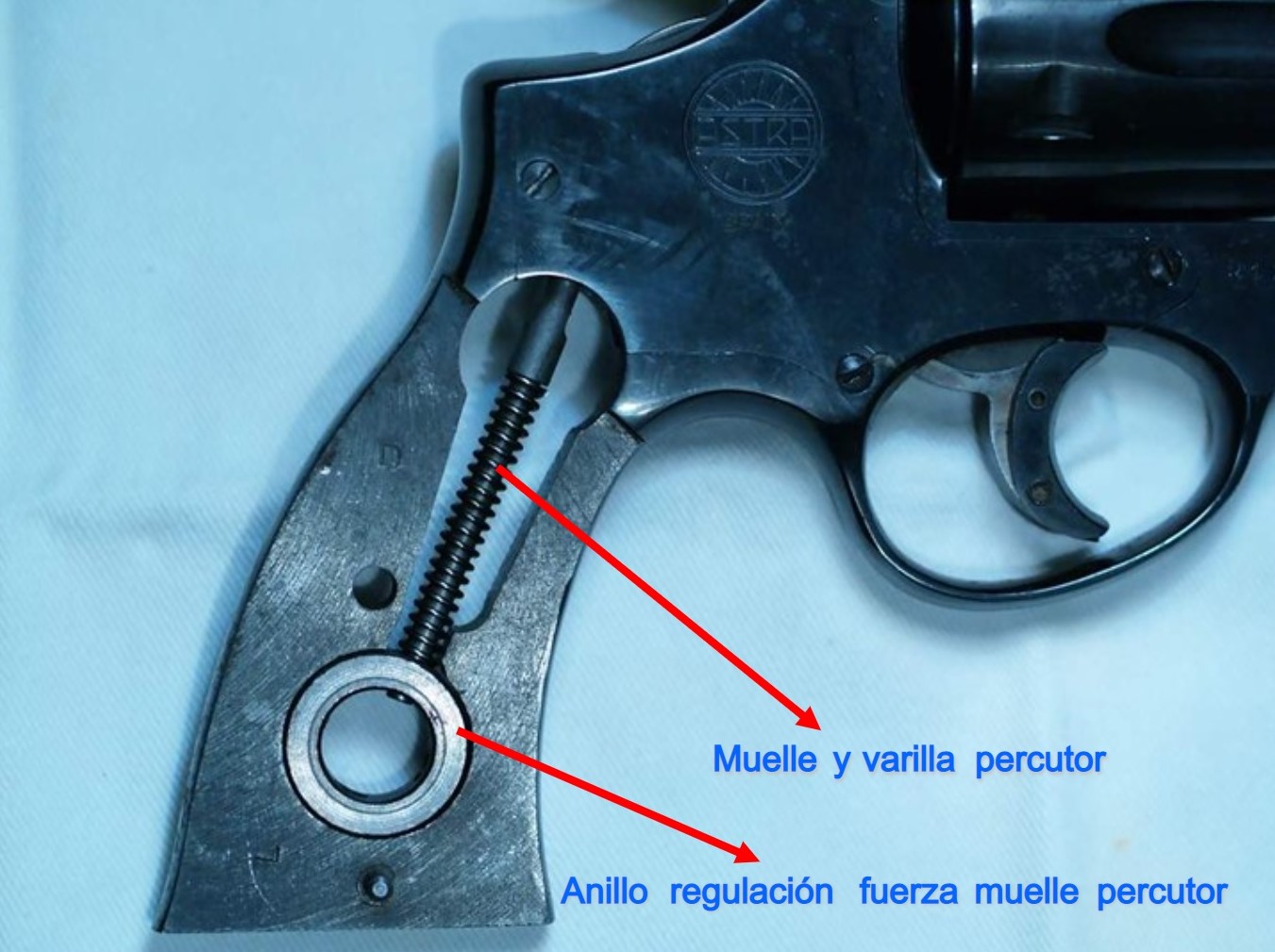 Si lo usas para precisión necesitas poca tensión en el muelle real, que también influye en la suavidad del disparador. Es cuestión de ir probando, cuando te produzca fallos de percusión pasa al siguiente taladro, así hasta que tengas un disparador suave sin fallos de percusión. El Match es un muy buen revólver si está en condiciones.