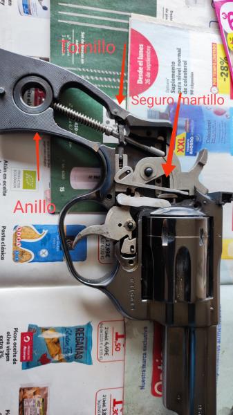 He encontrado una web con un manual gráfico del desmonte de dicho revolver, pero no explican esta cuestión.