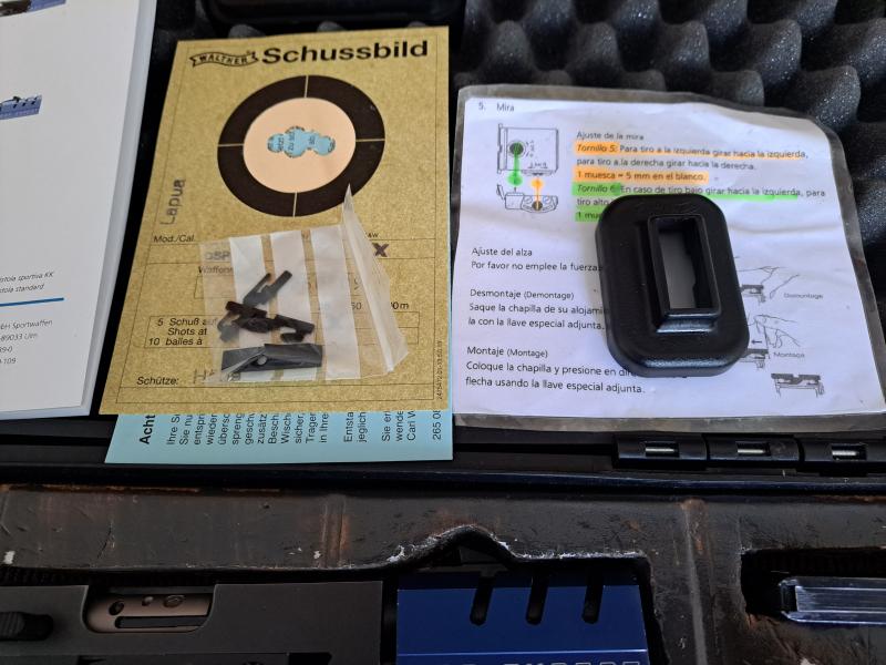 Incluye maletín de transporte y caza vainas del 32. También 2 chapitas para el alza y 1 punto de mira extra.