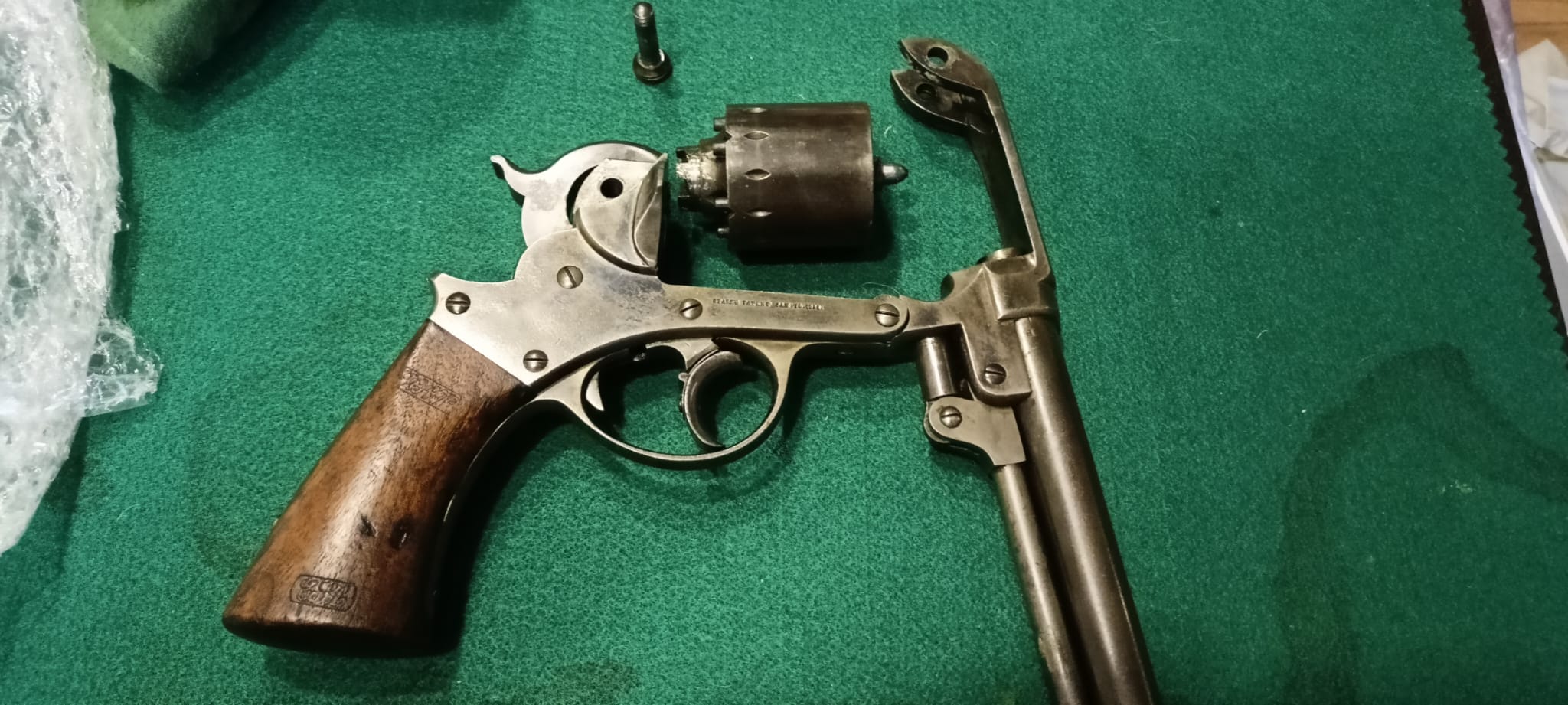 Modelo de doble action con el cartouche del inspector militar en la cacha.