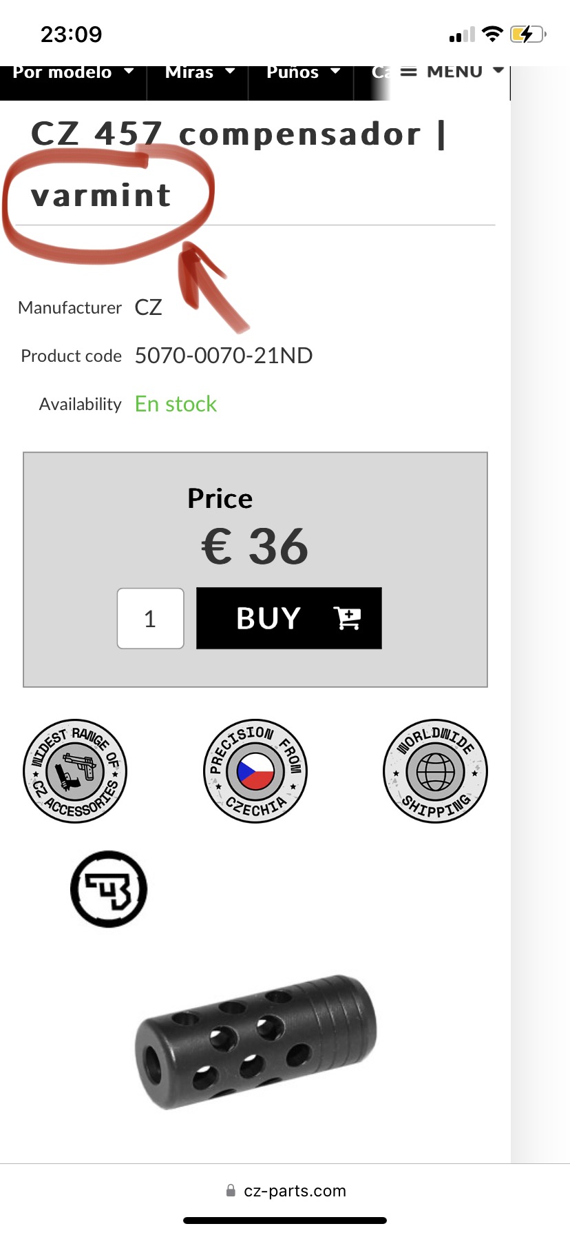 Buenas soy muy novato en esto y tengo un CZ 457 synthetic en 17 HMR y quería colocar un compensador y me queda la duda de cual de estos dos modelos que comentaron los compañeros el Varmint o American lleva ya que la rosca es la misma
