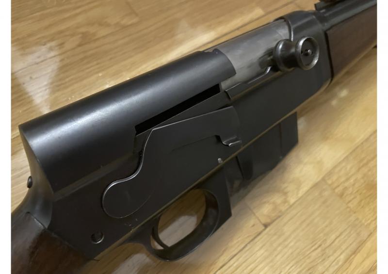 La segunda cuestión y más relevante es la reparación realizada de manera bastante tosca en la base del cargador. El cargador no extraible de estos rifles está fabricado en una chapa de acero bastante fina que hace difícil los trabajos de soldadura. En este caso, hicieron lo que buenamente pudieron pero el resultado estético no es el adecuado, al menos para mi. Es posible que con un equipo de soldadura para trabajos más precisos se pueda arreglar la cosa. He creído conveniente no pavonar la zona de la reparación para que se vea bien el problema. Como he dicho, el rifle sigue siendo plenamente funcional (aunque no puedo responder al 100% de la durabilidad y fiabilidad del cargador). El estriado del cañón está en excelente estado.