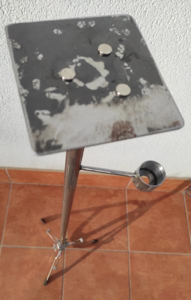 Lo tengo imprimado para pintarlo el fin de semana, el trípode lo encontré en la basura, es de una batería de de niño.