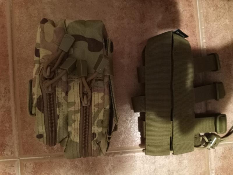 Webbing yoke cinturón molle MTP original surplus, pernera molle ddpm, pouch multiusos y pouch para botella de agua.