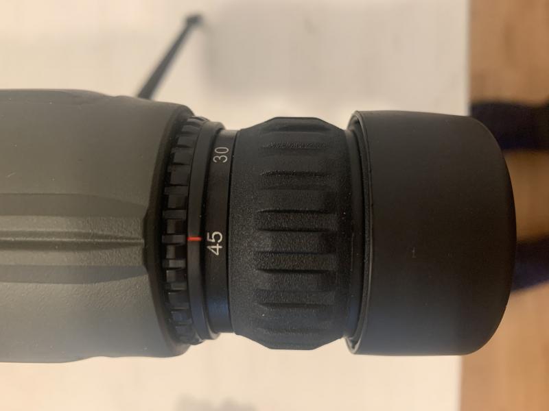 TELESCOPIO TASCO FC 15-45x50. Revestimiento de la lente: Multitratamiento Completo. Campo de visión (a 1000 m): 15x - 46,5 m / 45x - 21,6 m. - Salida de pupila: 3,3 mm. Distancia del ojo al ocular: 20 mm. Enfoque del ocular: Recto. Peso: 581 g. Longitud: 27,4 cm. Como nuevo y en la caja original. CAMBIO por telescopio de calidad similar con el ocular en ángulo.