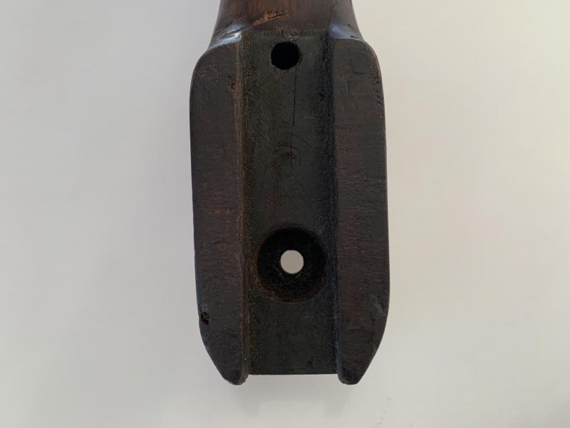 En venta culata original Auto-Ordnance procedente de subfusil Thompson M1A1. Creo que es el modelo para el ejército británico de la 2ª Guerra Mundial. Madera de nogal inglés. Viene con su cantonera. Le falta el soporte para la correa de transporte. PRECIO: 145,00 EUROS