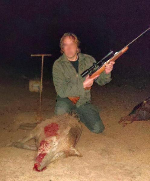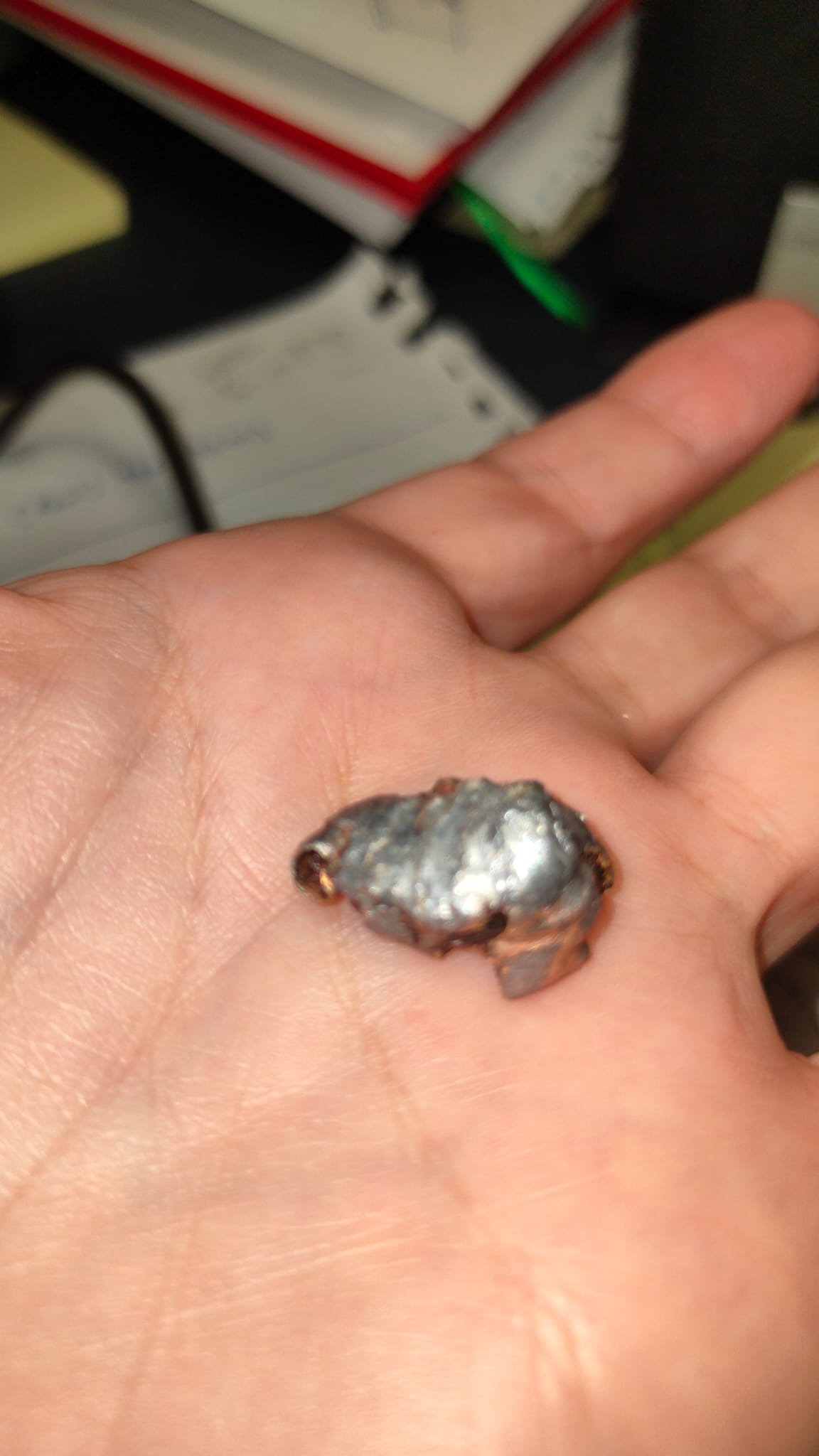 En la foto, Proyectil Remington Core Lokt de 150 gr. después de haber atravesado una cochina y quedar alojada en la piel, en el lado opuesto al disparo (Distancia del disparo: 65 mts).