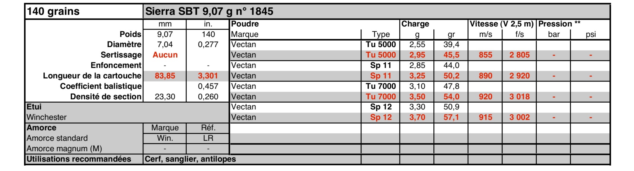 Las tablas esas alemanas que deben ser de un francés que se apellida Halo no traen el proyectil que comentas lo más parecido el SBT que suele cargar como 1 grains más para las mismas presiones, y no parece fuera del tiesto.