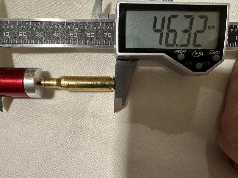 Me dan sobrepresion tanto las blizking como las barnes, si te fijas en las fotos el largo total es distinto por la forma de la punta pero la medida al calibre es igual en ambas 46,32mm, la recámara las estrías (ahora te lo digo de cabeza) andaban sobre 46,5mm, la forma de medirlo es la de la vieja escuela, una vaina disparada con una punta sujeta con algo que apriete un poco para que no se cuele, introducirla en la recámara y cerrar el arma despacio(esto repetido unas cuantas veces y con varias puntas distintas y sacar la media de 15/20 medidas). Bajaré como 1,5mm que es muy próximo a tablas y volveremos a probar…