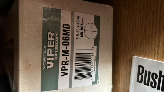 caja de aluminio original y visor y anillas a reestreno, Vortex Viper VPR-M-06 MD...6.5-20x50. Mil Dot.