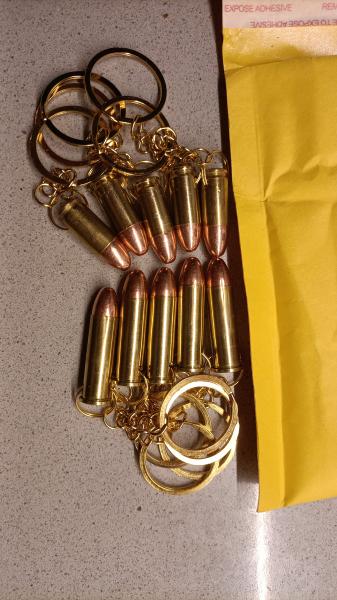 10 llaveros del calibre 9 pb o 38 sp 20 euros a 2e la unidad pillando lote se pueden mezclar todos del mismo o 5 y 5 como las fotos o como el cliente quiera no entra envio en el precio por walapop es económico dudas por privado llavero suelto 5 e unidad . un saludo desde asturias