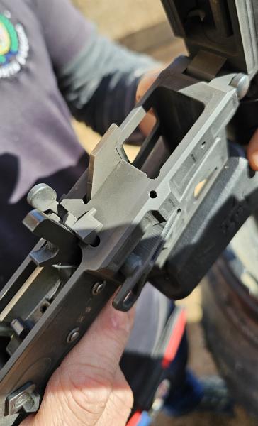 Si la pieza que señalas es la que tiene forma de garra, eso es el extractor, que el de este tipo sólo está en los AR-15 de 9mm.