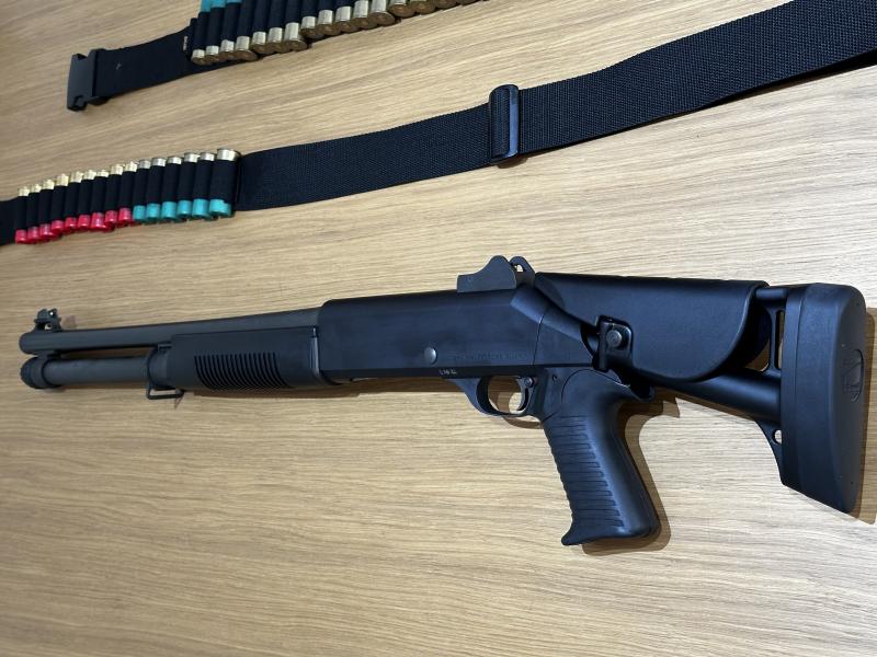 Vendo Benelli M4, totalmente de serie, con culata telescópica y cargador de 7 cartuchos, guiada con licencia tipo A,1800 euros con los siguientes accesorios: