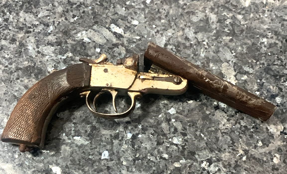 Hola, buenos tardes a todos, un amigo se ha encontrado en un fondo de baúl de su padre esta pistola de Garrucha, creo no confundirme, ¿Sabe alguien la historia de esta pistola en concreto? Gracias de antemano.