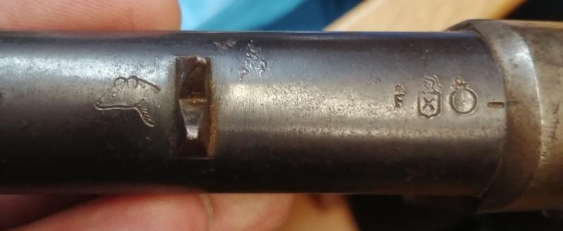 Los cuños anteriores están todos a la vista y luego al retirar el guardamanos sale este otro cuño que no sé lo que significa.