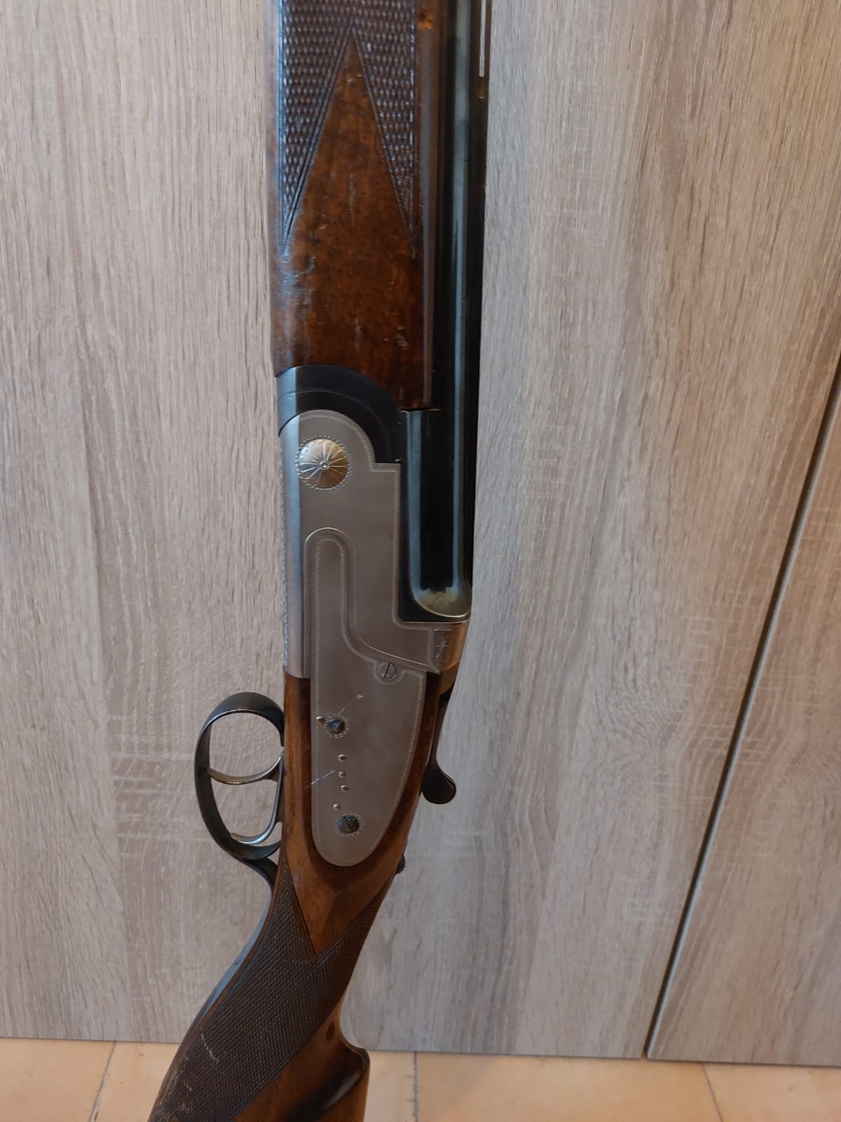 Este modelo parece de caza por tener 2 disparadores y no tener pistolet, el FS400 es un modelo de FOSO normalmente con un solo disparador y unos grabados en las pletinas que representan un plato volando y con pistolet.
