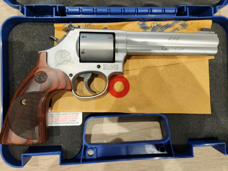 Vendo bonito revolver, para hacer hueco en el armero, Smith and Wesson 686 International, 6 pulgadas, como nuevo, muy pocos tiros, guiado en F, sin señales de uso apenas, lo vendo por 800 euros más gastos de envío, el revolver se encuentra en Cantabria.