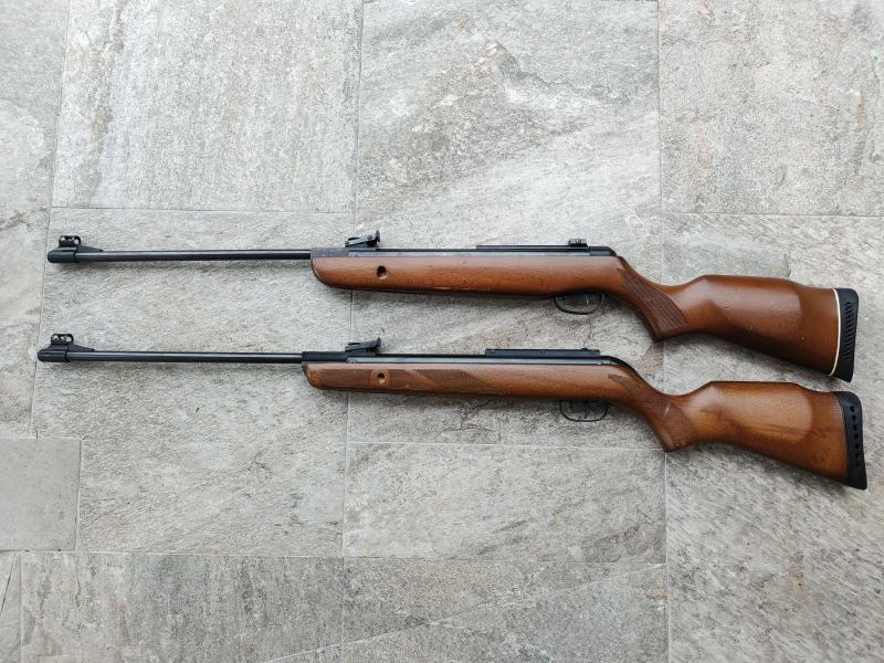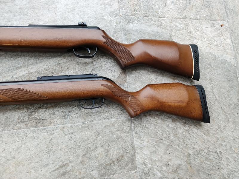 Para ilustrarlo os traigo este cara a cara entre la Gamo Hunter 440 de hace años, báscula y gatillo de acero, y la actual con ambos de plástico: