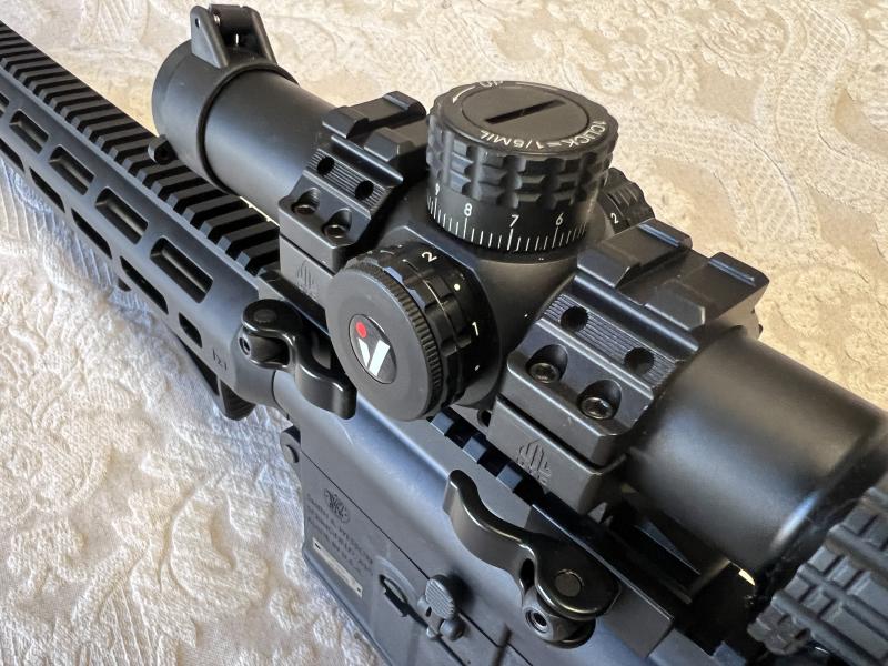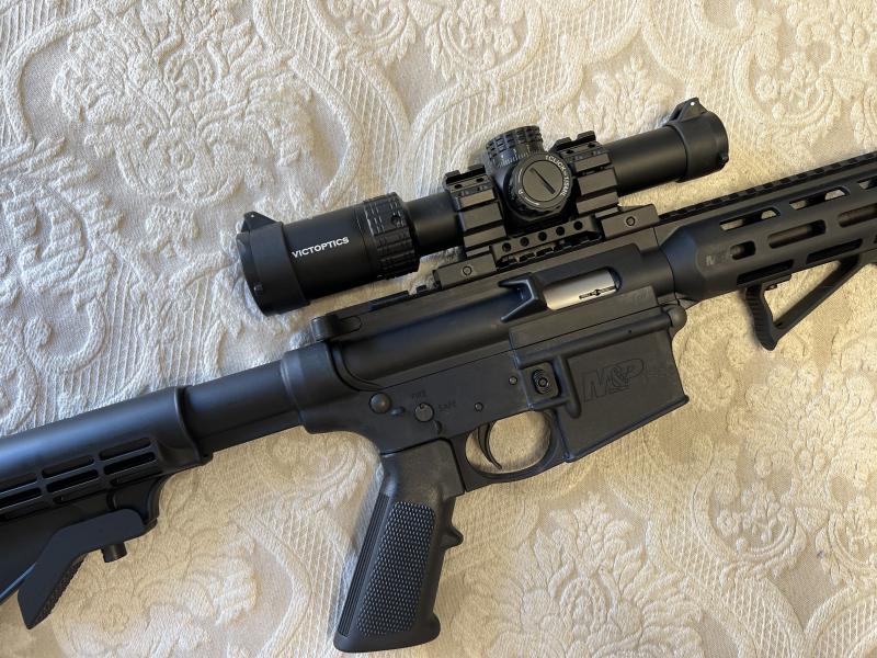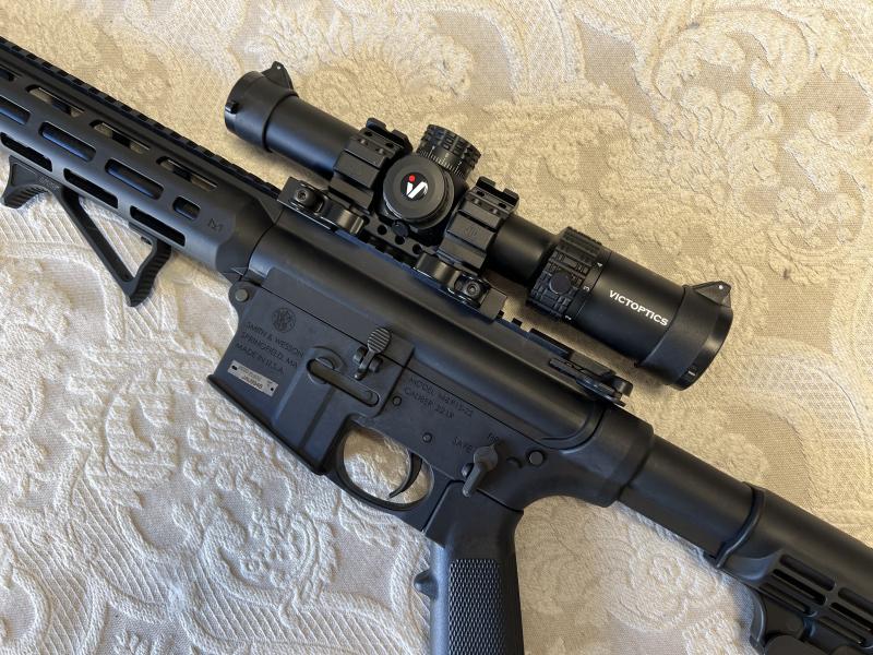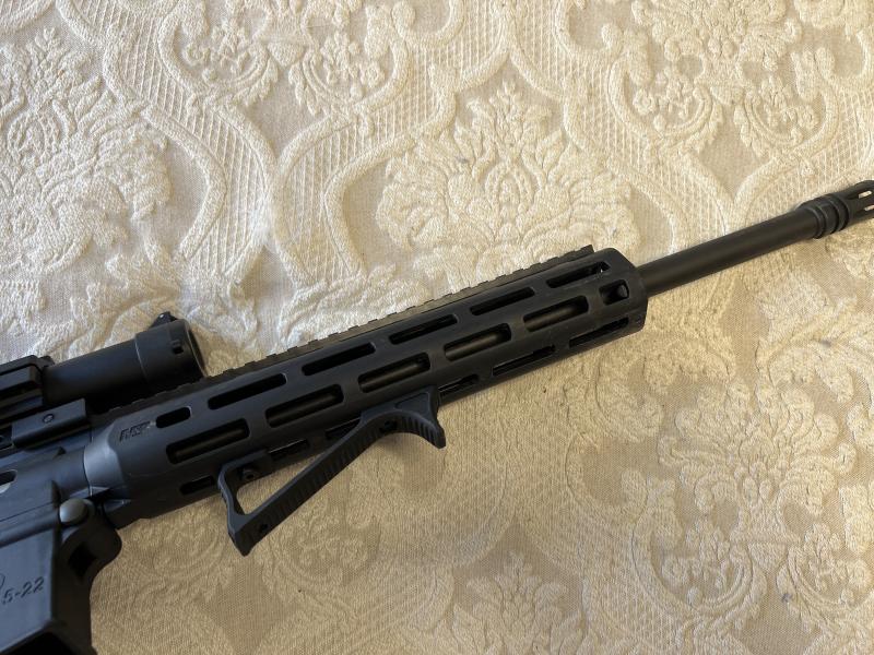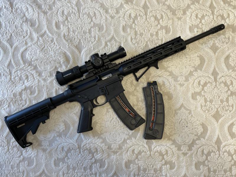 Vendo conjunto carabina del .22 LR tipo AR15 modelo S&W MP15 con varios accesorios. La carabina fue comprada hace menos de un año nueva de armería, y tiene menos de 100 tiros. El conjunto incluye un cargador adicional (50€ en tienda), una montura monobloque UTG USA (~100$, no la he encontrado en España), una empuñadura UTG USA en ángulo M-Lok (50€ en tienda) y un visor Victoptics 1-6x24 nuevo con retícula iluminada de gama media (~140€, una óptica sorprendentemente clara y precisa).