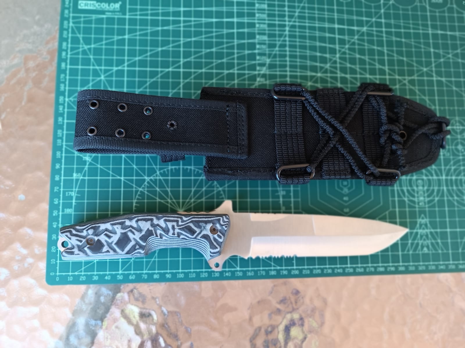 Empuñadura: micarta negra- gris.