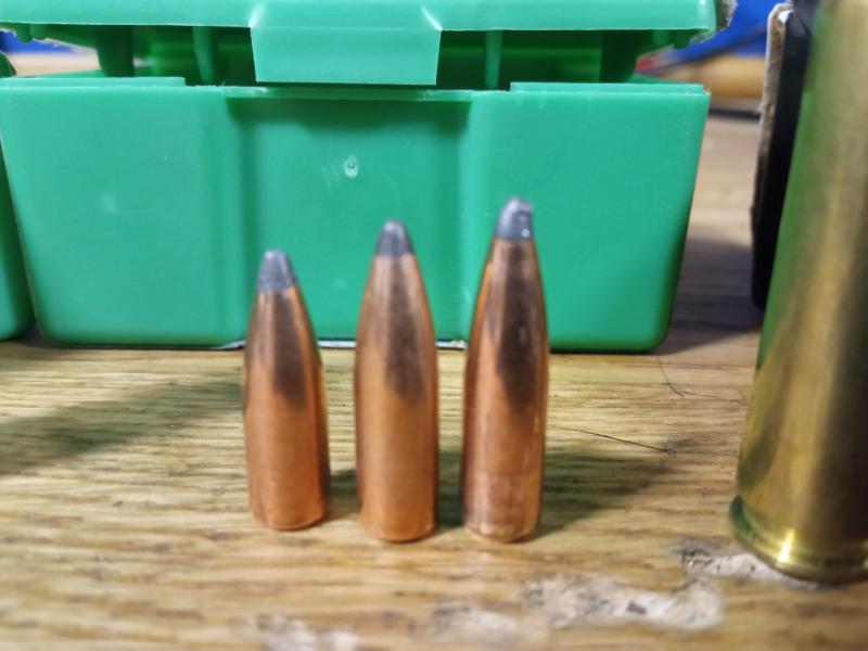 Fijate la poca diferencia aparente entre un proyectil Sierra y un Nosler Partition 100 grns, y uno agrupa a 100 m bien y el otro ni entra ni en el papel. La misma Partition con la punta de plomo limada, ya sí que si estabiliza y agrupa casi decentemente. La velocidad la tengo al máximo, porque si no, seguro, que no estabilizó.