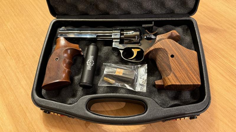 Vendo revolver MANURHIN MR32 MATCH c/32WC impecable, muy poco usado , con cacha Nill KN anatómica y la original, manual y certificado de agrupación de la casa. La talla de la cacha es M-S . Comprado en Ibergrips en 2022. Todo en estado impoluto. Vendo por dejar tiro de fuego central. Precio 2000 € . Cambiaria por PARDINI SP22 en impecable estado.