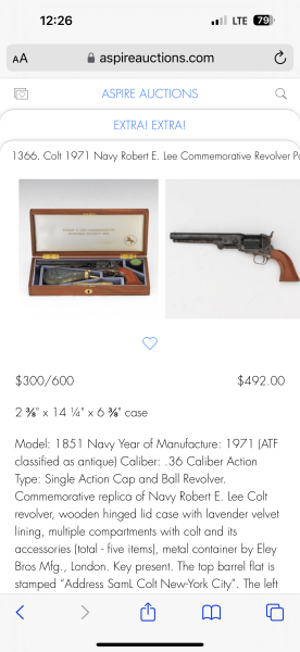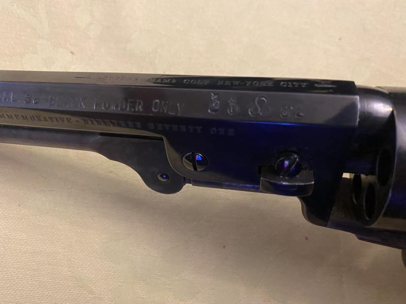 Este revolver como su nombre indica es un Colt Navy mod.1851 y es una copia conmemorativa fabricado en el año 1971 a causa del centenario de la muerte del general Lee que mandó el Ejercito Confederado de Virginia del Norte durante la Guerra de Secesión norteamericana , así que es "original" del año 1971.