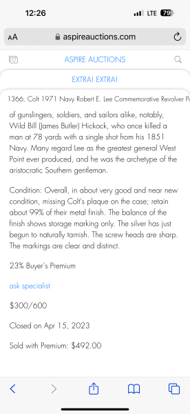 Aunque lo hallas puesto aqui en este apartado del foro , a la venta , mi opinion es que no quieres vender este revolver .
