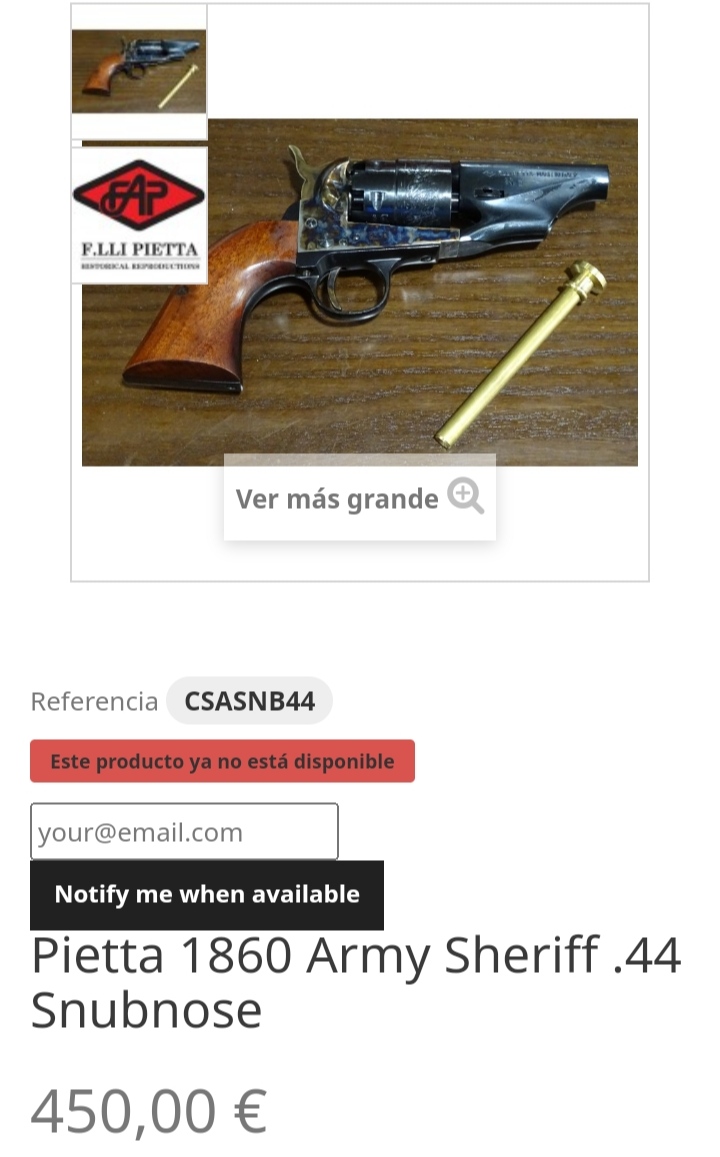 En armeria Trelles venden bastante de Pietta, si estais interesados yo llamaría a ver si lo pueden traer, las versiones snubnose de colt si las tienen.
