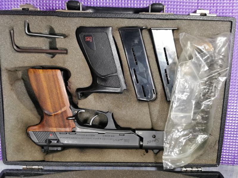 Expectacular pistola hk 9ps,con muchos repuestos, accesorios, docum original, banco de pruebas, maletin... No hay otra igual de completa, y con una precisión increíble, disparo suave.. En fin el que la conoce, lo sabe. La vendo por falta de uso.