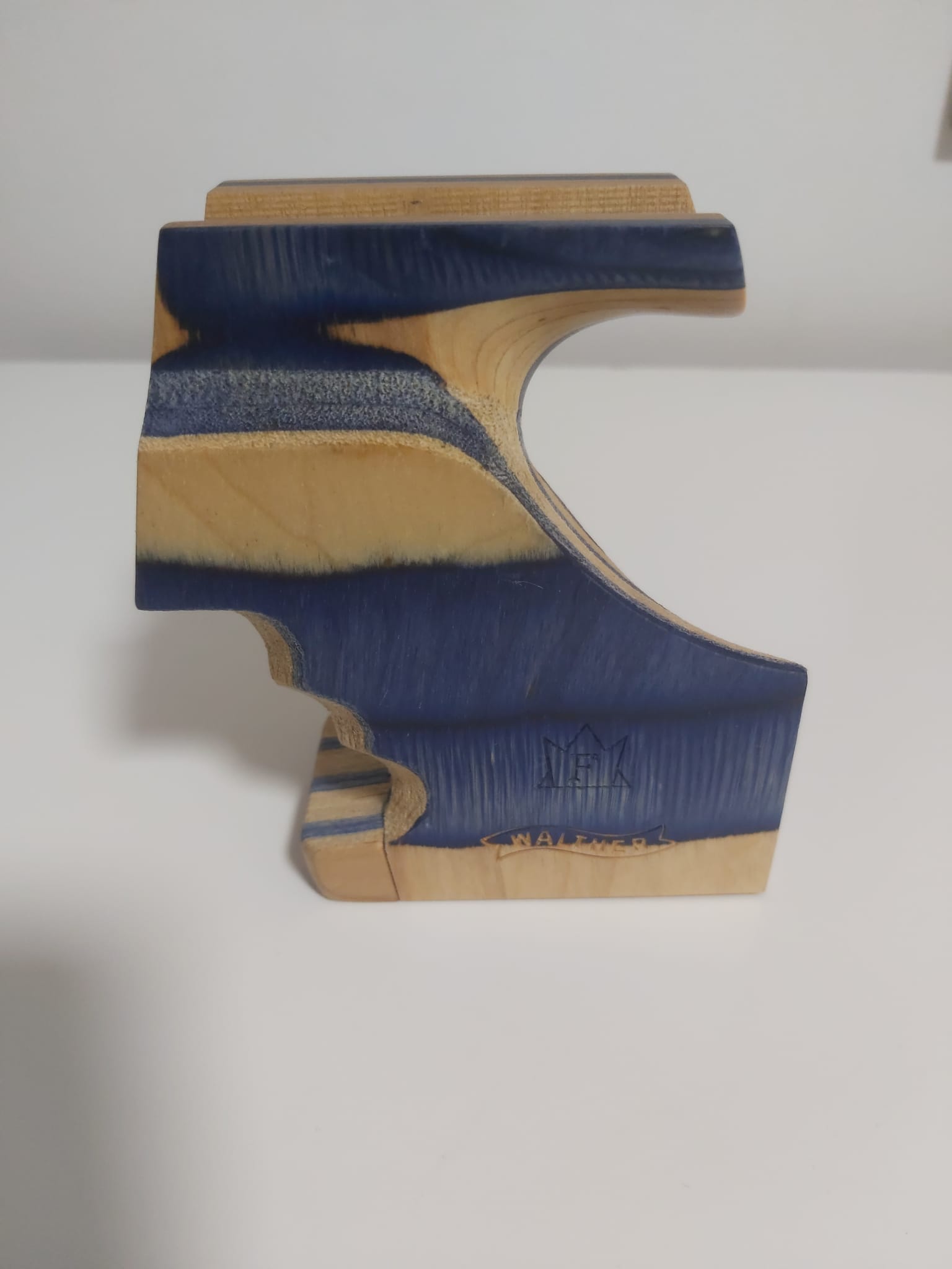 Rebuscando por el cajón desastre, me ha aparecido envuelta en una caja esta cacha de una pistola Walther laminada de la talla S.