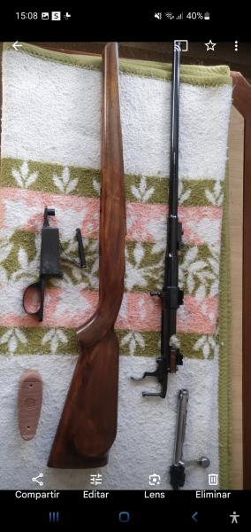 Hola a todos! Abro este post, para mostrar el resultado de una restauración de una culata de madera. El arma es una Carabina Argentina del 308 W, que tomando como base un Mauser 35, se le colocó un cañón de 7,62 mm. y deportivizó. Pondré un antes y un después. Y para no aburrir, y entenderme en exceso, sólo pondré fotos. Explicando a los verdaderamente interesados, alguna cuestión, duda o pregunta. Un saludo.