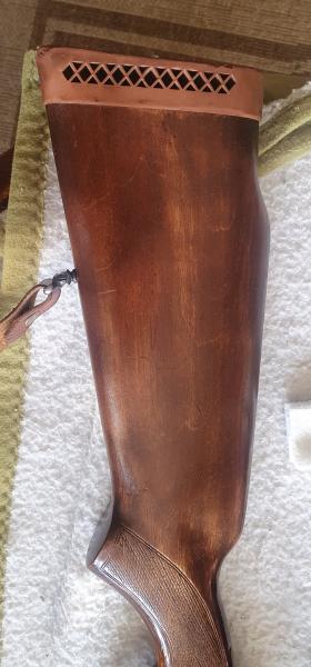 No esfacil de hacer buenas fotos del arma terminada. Yo en la ultima que hice pues segun como le viene la luz no parece que sea la misma madera! Solo tu puedes decirnos si las fotos reflejan correctamente el color que tiene. Ahora el tinte es segun el tipo de aceite que le pongas y claro esta segun de que madera es. Yo solo utilizo una (danisch oil) y en general pongo 2 o 3 capas segun como me guste el tono que tenga. Y cada arma tiene una pinta diferente. He aqui 2 ejemplos de lo que digo.
