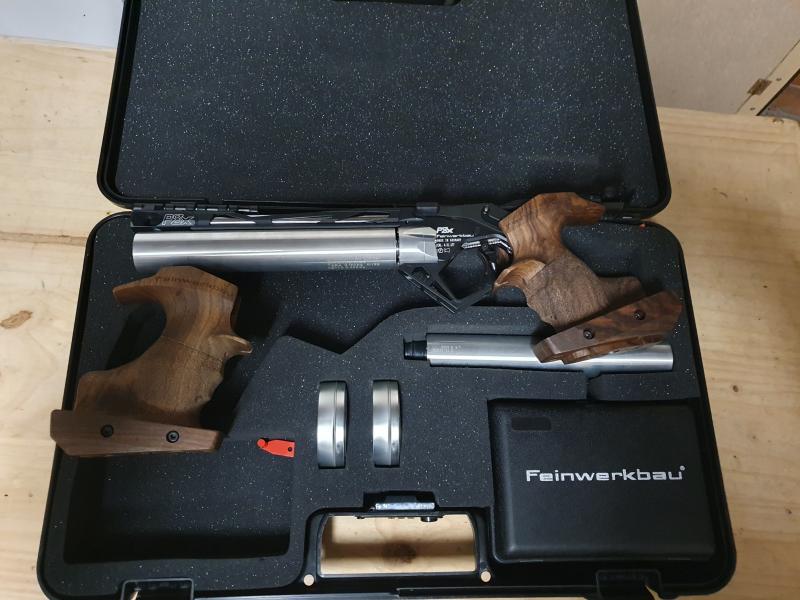 Feinwerkbau P8X, em excelente estado com dois cilindros válidos até MAR2032. A arma encontra-se em Portalegre - Portugal. posso fazer envio para Espanha.