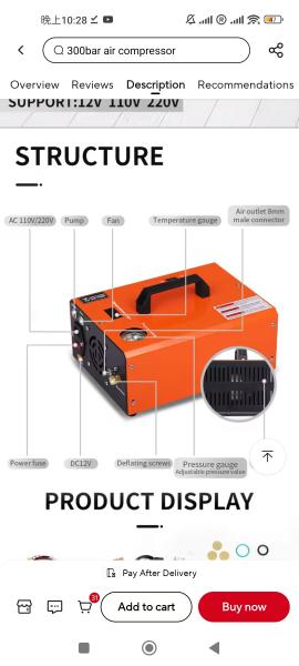 No sabía nada sobre el PCP. Lo único que sé es que hay que inflarlo con una bomba de aire. Las bombas de aire en las tiendas son caras, cuestan entre 300 y 400 euros. Descubrí que Speedbuy vende bombas similares por sólo 100-200 euros. Así que compré uno... Lo elegí simplemente porque se veía hermoso.