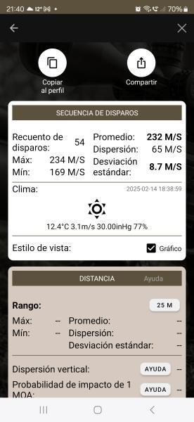 Ejemplo: 766fps son 233.48m/s, 767fps son 233.78ms/.