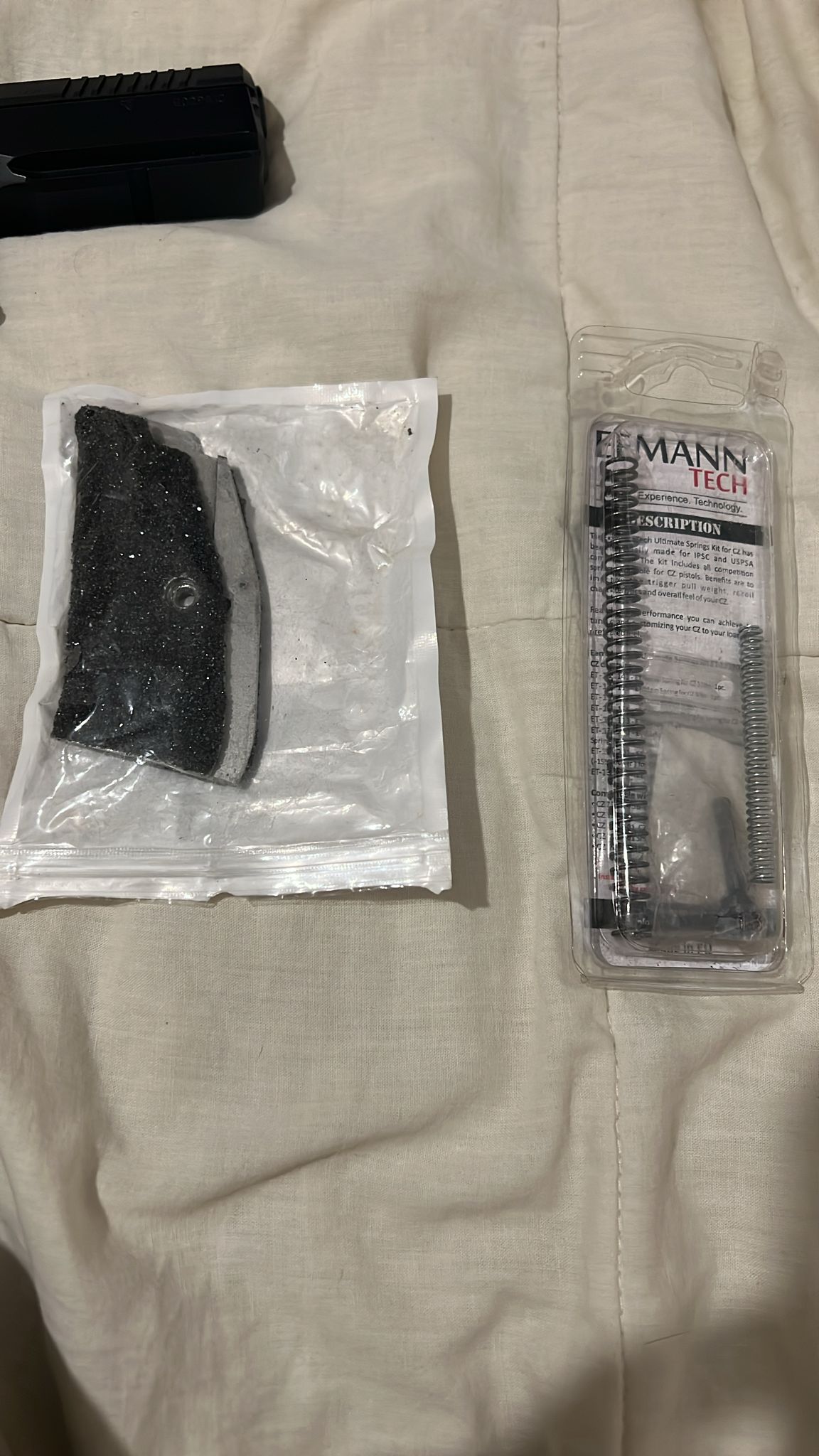 El arma tiene gatillo martillo y muelles de competición , también incluye el seguro ampliado para una sujeción mas precisa y cómoda, incluyo tambn seguro y muelles originales, la mira esta cambiada para que sea ajustable en altura y deriva