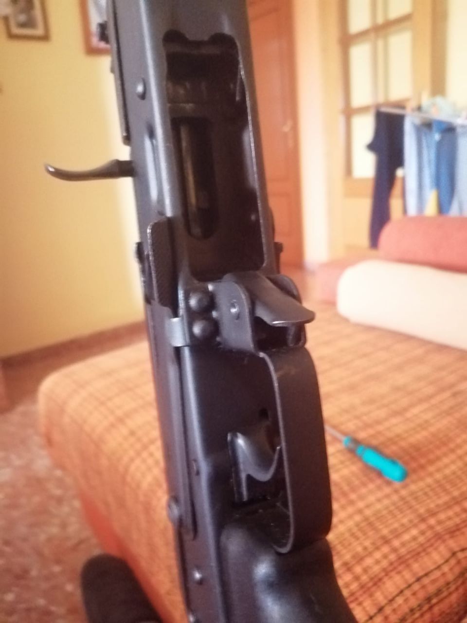 Por fallecimiento de su anterior titular vendo carabina táctica CUGIR WASR-22, es decir un Kalashnikov de los fabricados por la factoria militar de CUGIR en calibre .22LR. Acompaña 2 cargadores de 10 cartuchos, uno de plástico corto y otro largo metálico. 600€.