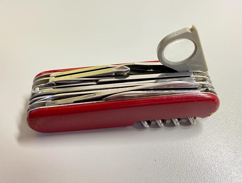 G84 escribió:Y ya puestos sigo mirando y ahora tengo también otro modelo que siempre he pensado que era una swisschamp y le falta el gancho, solo tiene 4 accesorios, pero está si tiene alicate y lupa antigua.